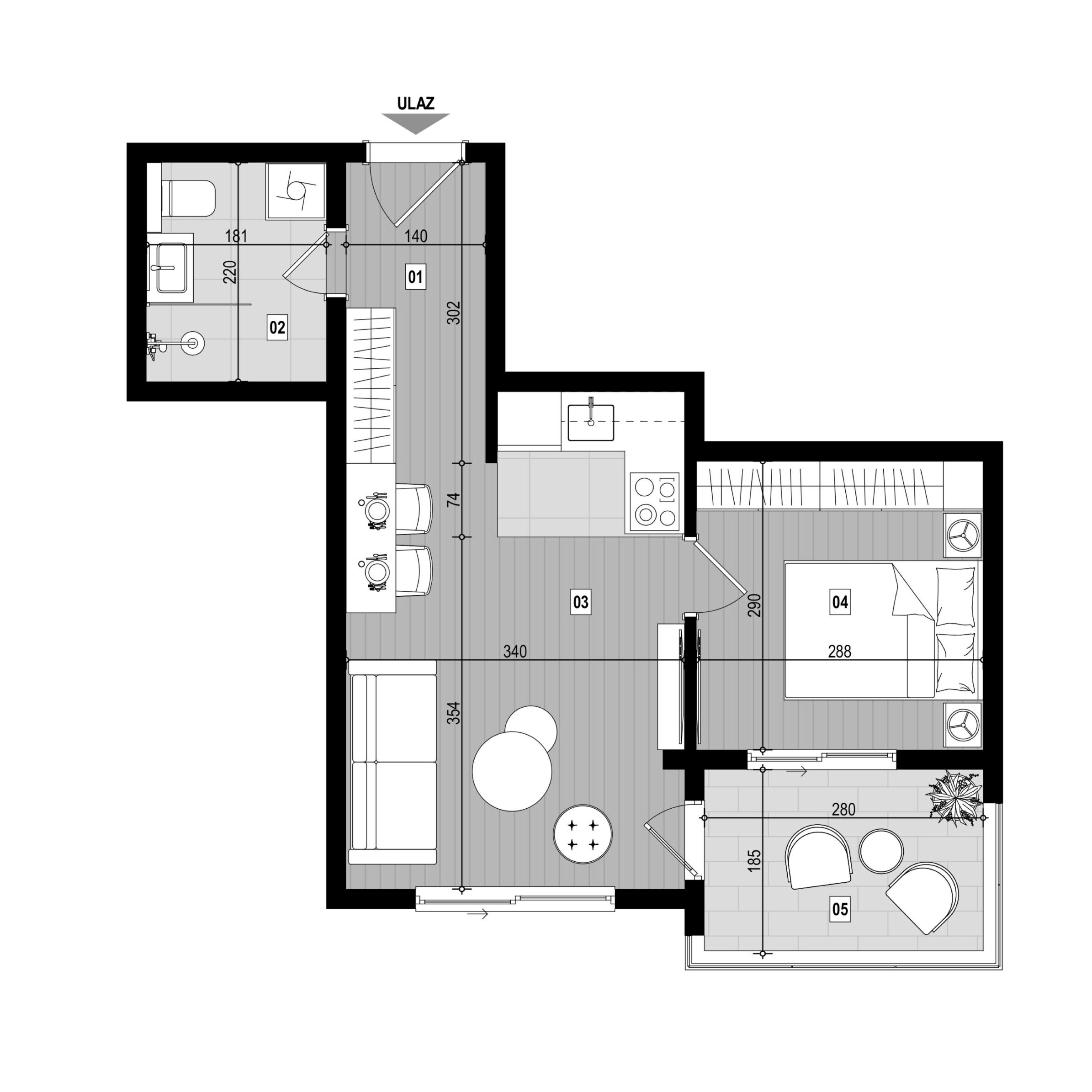 // JEDNOSOBAN STAN L3, ULAZ 1