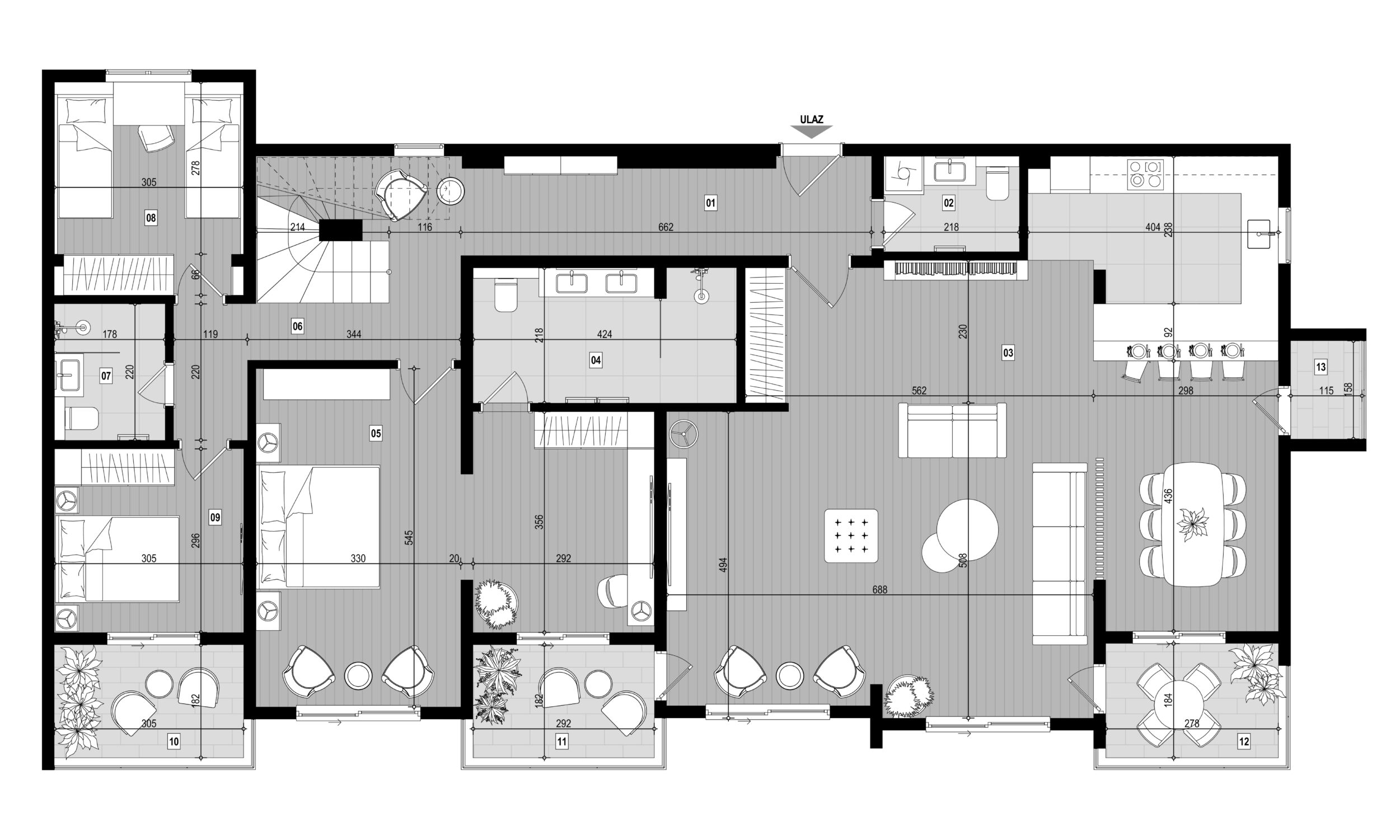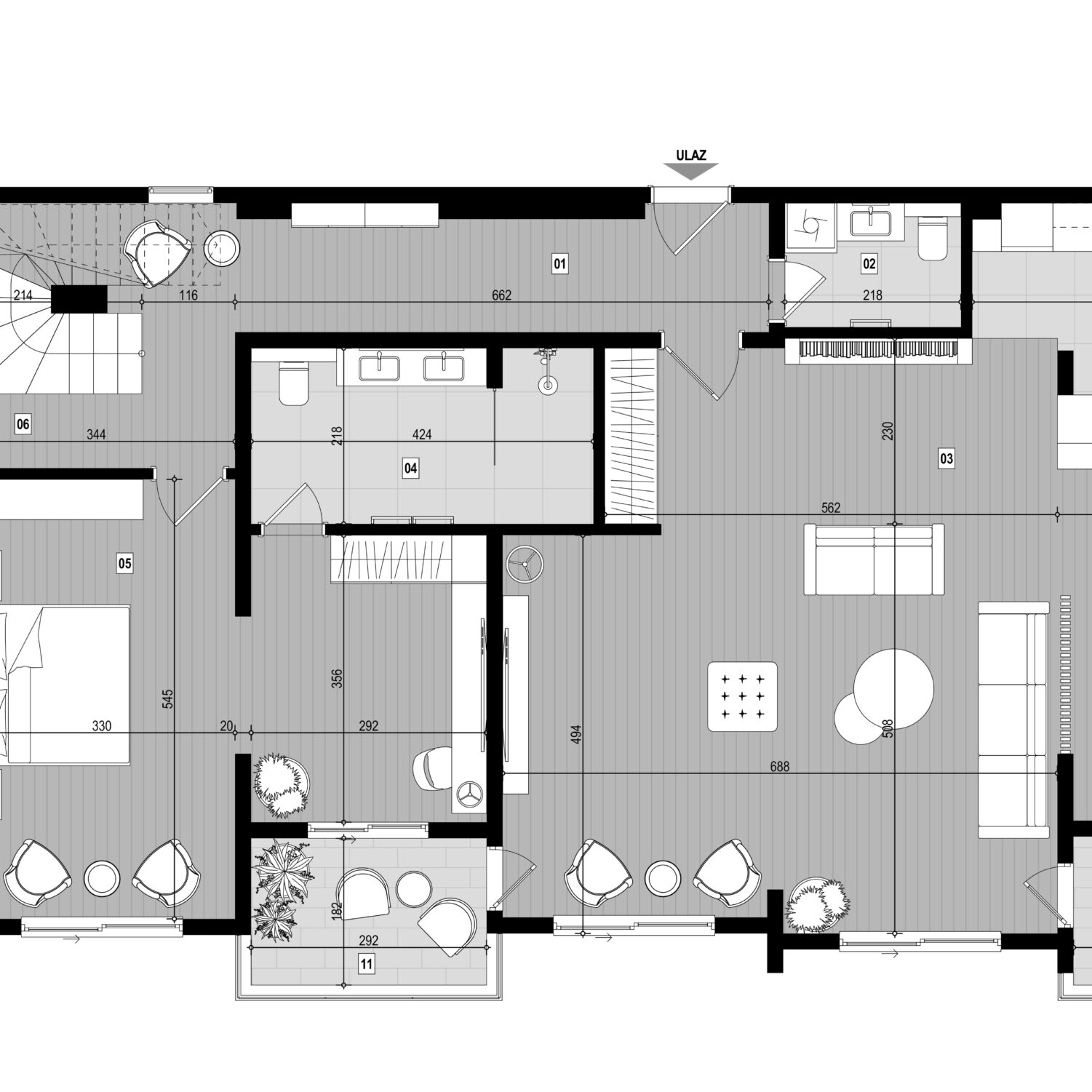 • Kuhinja, trpezarija, dn.boravak 71.90 m²